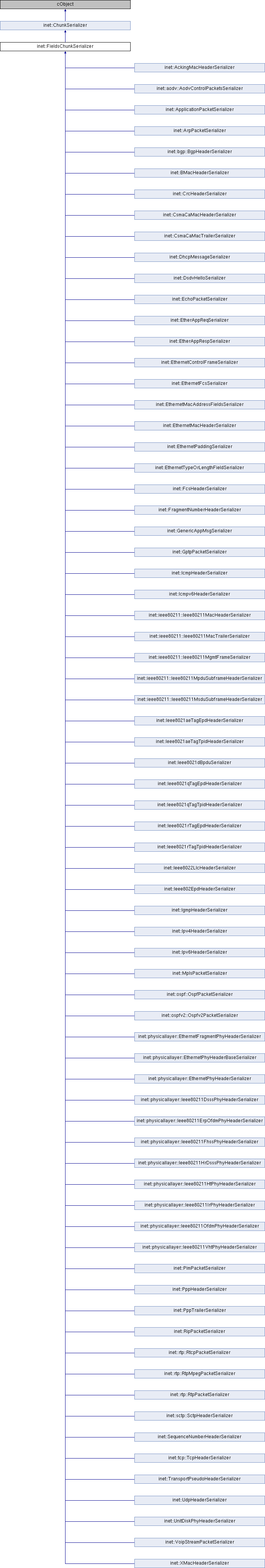 Implemented in inet::physicallayer::Ieee80211VhtPhyHeaderSerializer, inet::physicallayer::Ieee80211HtPhyHeaderSerializer, inet::physicallayer::Ieee80211ErpOfdmPhyHeaderSerializer, inet::physicallayer::Ieee80211OfdmPhyHeaderSerializer, inet::EthernetFcsSerializer, inet::physicallayer::Ieee80211HrDsssPhyHeaderSerializer, inet::ieee80211::Ieee80211MpduSubframeHeaderSerializer, inet::EthernetPaddingSerializer, inet::physicallayer::EthernetFragmentPhyHeaderSerializer, inet::physicallayer::Ieee80211DsssPhyHeaderSerializer, inet::ospfv2::Ospfv2PacketSerializer, inet::EthernetMacHeaderSerializer, inet::ieee80211::Ieee80211MsduSubframeHeaderSerializer, inet::physicallayer::EthernetPhyHeaderSerializer, inet::physicallayer::Ieee80211IrPhyHeaderSerializer, inet::EtherAppRespSerializer, inet::EthernetTypeOrLengthFieldSerializer, inet::ieee80211::Ieee80211MacTrailerSerializer, inet::PppTrailerSerializer, inet::CsmaCaMacTrailerSerializer, inet::Ieee8021aeTagEpdHeaderSerializer, inet::Ieee8021qTagEpdHeaderSerializer, inet::Ieee8021rTagEpdHeaderSerializer, inet::tcp::TcpHeaderSerializer, inet::Ipv4HeaderSerializer, inet::ieee80211::Ieee80211MacHeaderSerializer, inet::ieee80211::Ieee80211MgmtFrameSerializer, inet::ArpPacketSerializer, inet::AckingMacHeaderSerializer, inet::GptpPacketSerializer, inet::physicallayer::EthernetPhyHeaderBaseSerializer, inet::physicallayer::Ieee80211FhssPhyHeaderSerializer, inet::sctp::SctpHeaderSerializer, inet::CsmaCaMacHeaderSerializer, inet::aodv::AodvControlPacketsSerializer, inet::bgp::BgpHeaderSerializer, inet::ospf::OspfPacketSerializer, inet::ApplicationPacketSerializer, inet::DhcpMessageSerializer, inet::EtherAppReqSerializer, inet::GenericAppMsgSerializer, inet::VoipStreamPacketSerializer, inet::BMacHeaderSerializer, inet::EthernetMacAddressFieldsSerializer, inet::Ieee8021dBpduSerializer, inet::PppHeaderSerializer, inet::XMacHeaderSerializer, inet::EchoPacketSerializer, inet::Icmpv6HeaderSerializer, inet::IcmpHeaderSerializer, inet::IgmpHeaderSerializer, inet::MplsPacketSerializer, inet::UnitDiskPhyHeaderSerializer, inet::CrcHeaderSerializer, inet::FcsHeaderSerializer, inet::FragmentNumberHeaderSerializer, inet::SequenceNumberHeaderSerializer, inet::DsdvHelloSerializer, inet::PimPacketSerializer, inet::RipPacketSerializer, inet::TransportPseudoHeaderSerializer, inet::UdpHeaderSerializer, inet::Ipv6HeaderSerializer, inet::rtp::RtpMpegPacketSerializer, inet::rtp::RtcpPacketSerializer, inet::rtp::RtpPacketSerializer, inet::EthernetControlFrameSerializer, inet::Ieee8021aeTagTpidHeaderSerializer, inet::Ieee8021qTagTpidHeaderSerializer, inet::Ieee8021rTagTpidHeaderSerializer, inet::Ieee8022LlcHeaderSerializer, and inet::Ieee802EpdHeaderSerializer.