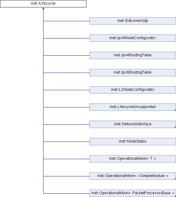 Implemented in inet::NetworkInterface, inet::Ipv6RoutingTable, inet::Ipv4RoutingTable, inet::OperationalMixin< T >, inet::OperationalMixin< PacketProcessorBase >, inet::OperationalMixin< cSimpleModule >, inet::NodeStatus, inet::Ipv4NodeConfigurator, inet::ExtLowerUdp, inet::L2NodeConfigurator, and inet::LifecycleUnsupported.