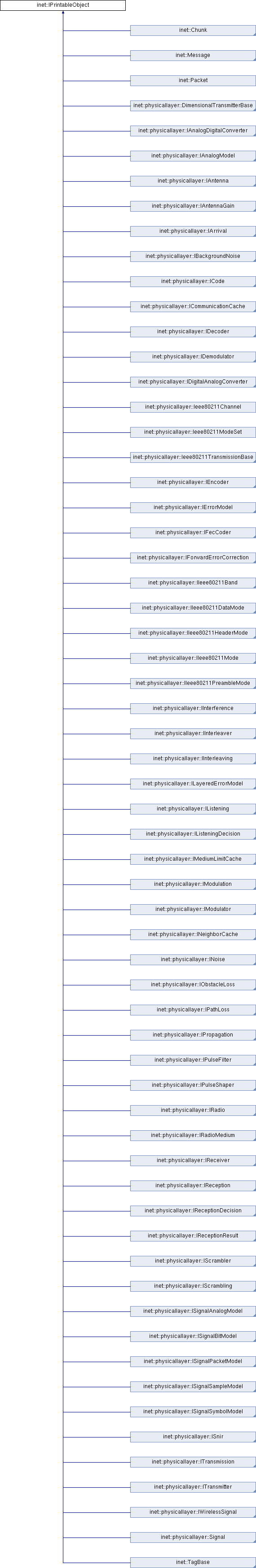 Reimplemented in inet::Packet, inet::Chunk, inet::physicallayer::RadioMedium, inet::physicallayer::Radio, inet::physicallayer::ConvolutionalCoder, inet::physicallayer::Ieee80211OfdmMode, inet::Message, inet::SequenceChunk, inet::physicallayer::MediumLimitCache, inet::physicallayer::Ieee80211OfdmDataMode, inet::physicallayer::Ieee80211HrDsssMode, inet::physicallayer::Ieee80211IrMode, inet::physicallayer::Ieee80211LayeredOfdmReceiver, inet::physicallayer::Ieee80211DsssMode, inet::physicallayer::Ieee80211LayeredOfdmTransmitter, inet::physicallayer::Ieee80211FhssMode, inet::physicallayer::DielectricObstacleLoss, inet::physicallayer::Ieee80211OfdmSignalMode, inet::physicallayer::UwbIrStochasticPathLoss, inet::physicallayer::SuiPathLoss, inet::physicallayer::Ieee80211OfdmPreambleMode, inet::physicallayer::Ieee80211YansErrorModel, inet::physicallayer::Ieee802154UwbIrTransmitter, inet::physicallayer::DimensionalTransmitterBase, inet::physicallayer::FreeSpacePathLoss, inet::physicallayer::VectorCommunicationCache, inet::physicallayer::ApskLayeredReceiver, inet::physicallayer::RicianFading, inet::physicallayer::NakagamiFading, inet::physicallayer::TwoRayGroundReflection, inet::physicallayer::NeighborListNeighborCache, inet::physicallayer::QuadTreeNeighborCache, inet::physicallayer::IdealObstacleLoss, inet::physicallayer::RayleighFading, inet::physicallayer::ApskLayeredTransmitter, inet::physicallayer::GridNeighborCache, inet::physicallayer::InterpolatingAntenna, inet::physicallayer::MapCommunicationCache, inet::physicallayer::Ieee80211NistErrorModel, inet::physicallayer::ReferenceCommunicationCache, inet::physicallayer::TransmissionBase, inet::physicallayer::Ieee80211OfdmDecoder, inet::physicallayer::Ieee80211ModeSet, inet::physicallayer::AxiallySymmetricAntenna, inet::physicallayer::ParabolicAntenna, inet::physicallayer::Ieee80211OfdmModulator, inet::physicallayer::ApskEncoder, inet::physicallayer::NarrowbandSignalAnalogModel, inet::physicallayer::CosineAntenna, inet::physicallayer::DipoleAntenna, inet::physicallayer::Ieee80211OfdmErrorModel, inet::physicallayer::Ieee80211DsssOfdmMode, inet::physicallayer::ConstantGainAntenna, inet::physicallayer::Ieee80211OfdmDecoderModule, inet::physicallayer::Ieee80211OfdmDemodulator, inet::physicallayer::UnitDiskReception, inet::physicallayer::FlatReceiverBase, inet::physicallayer::ReceptionBase, inet::physicallayer::LogNormalShadowing, inet::physicallayer::AdditiveScrambler, inet::physicallayer::WirelessSignal, inet::physicallayer::FlatTransmitterBase, inet::physicallayer::ConvolutionalCode, inet::physicallayer::Ieee80211OfdmEncoder, inet::physicallayer::Ieee80211TransmitterBase, inet::physicallayer::UnitDiskTransmitter, inet::physicallayer::LayeredReception, inet::physicallayer::LayeredReceptionResult, inet::physicallayer::Ieee80211OfdmInterleaver, inet::physicallayer::Ieee80211ReceiverBase, inet::physicallayer::Ieee802154UwbIrReceiver, inet::physicallayer::ApskDecoder, inet::physicallayer::LayeredTransmission, inet::physicallayer::DimensionalSnir, inet::physicallayer::NarrowbandTransmitterBase, inet::physicallayer::SnirReceiverBase, inet::physicallayer::Qam1024Modulation, inet::physicallayer::Qam16Modulation, inet::physicallayer::Qam256Modulation, inet::physicallayer::Qam64Modulation, inet::physicallayer::Arrival, inet::physicallayer::Ieee80211OfdmEncoderModule, inet::physicallayer::ApskDemodulator, inet::physicallayer::ApskModulator, inet::physicallayer::StochasticErrorModel, inet::physicallayer::BpskModulation, inet::physicallayer::QpskModulation, inet::physicallayer::ScalarSnir, inet::physicallayer::IsotropicAntenna, inet::physicallayer::ApskModulationBase, inet::physicallayer::NarrowbandReceiverBase, inet::physicallayer::BreakpointPathLoss, inet::physicallayer::SignalBitModel, inet::physicallayer::ApskCode, inet::physicallayer::ConstantSpeedPropagation, inet::physicallayer::Ieee80211OfdmDemodulatorModule, inet::physicallayer::Ieee80211BerTableErrorModel, inet::physicallayer::Ieee80211UnitDiskTransmitter, inet::physicallayer::NoiseDimensionalTransmitter, inet::physicallayer::UnitDiskReceiver, inet::physicallayer::UnitDiskTransmission, inet::physicallayer::DimensionalBackgroundNoise, inet::physicallayer::PropagationBase, inet::physicallayer::StochasticLayeredErrorModel, inet::physicallayer::MfskModulation, inet::physicallayer::AdditiveScramblerModule, inet::physicallayer::SignalSymbolModel, inet::physicallayer::Ieee80211OfdmInterleaverModule, inet::physicallayer::Ieee80211OfdmModulatorModule, inet::physicallayer::AntennaBase, inet::physicallayer::ListeningBase, inet::physicallayer::NarrowbandNoiseBase, inet::physicallayer::NarrowbandTransmissionBase, inet::physicallayer::MaskModulation, inet::physicallayer::MpskModulation, inet::physicallayer::MqamModulation, inet::physicallayer::ConvolutionalCoderModule, inet::physicallayer::Ieee80211OfdmCode, inet::physicallayer::Ieee80211UnitDiskReceiver, inet::physicallayer::DimensionalSignalAnalogModel, inet::physicallayer::DimensionalNoise, inet::physicallayer::DimensionalTransmission, inet::physicallayer::IsotropicDimensionalBackgroundNoise, inet::physicallayer::SnirBase, inet::physicallayer::ConstantTimePropagation, inet::physicallayer::BandListening, inet::physicallayer::ReceptionDecision, inet::physicallayer::ReceptionResult, inet::physicallayer::Ieee80211OfdmModulation, inet::physicallayer::Ieee80211DimensionalTransmitter, inet::physicallayer::ApskDimensionalReceiver, inet::physicallayer::ApskScalarReceiver, inet::physicallayer::IsotropicScalarBackgroundNoise, inet::physicallayer::FlatTransmissionBase, inet::physicallayer::NarrowbandReceptionBase, inet::physicallayer::SignalSampleModel, inet::physicallayer::Ieee80211DimensionalReceiver, inet::physicallayer::Ieee80211ScalarReceiver, inet::physicallayer::Ieee80211TransmissionBase, inet::physicallayer::Ieee802154NarrowbandDimensionalReceiver, inet::physicallayer::Ieee802154NarrowbandScalarReceiver, inet::physicallayer::Signal, inet::physicallayer::ApskDimensional