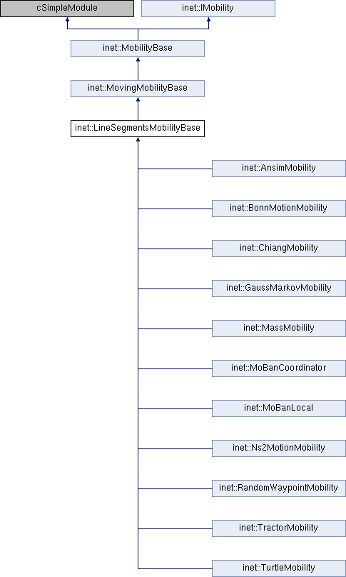 Implemented in inet::MoBanCoordinator, inet::MoBanLocal, inet::Ns2MotionMobility, inet::MassMobility, inet::TurtleMobility, inet::GaussMarkovMobility, inet::TractorMobility, inet::AnsimMobility, inet::BonnMotionMobility, inet::ChiangMobility, and inet::RandomWaypointMobility.