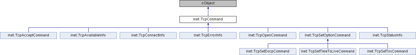 Reimplemented in inet::TcpStatusInfo, inet::TcpConnectInfo, inet::TcpAvailableInfo, inet::TcpSetTosCommand, inet::TcpSetDscpCommand, inet::TcpSetTimeToLiveCommand, inet::TcpSetOptionCommand, inet::TcpAcceptCommand, inet::TcpOpenCommand, and inet::TcpErrorInfo.