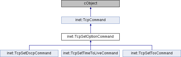 Reimplemented in inet::TcpSetTosCommand, inet::TcpSetDscpCommand, and inet::TcpSetTimeToLiveCommand.