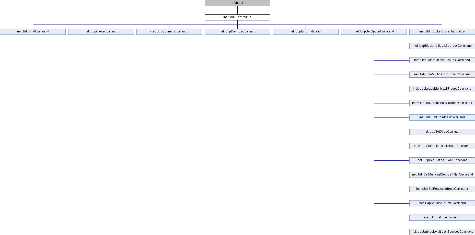 Reimplemented in inet::UdpSetMulticastSourceFilterCommand, inet::UdpLeaveMulticastSourcesCommand, inet::UdpJoinMulticastSourcesCommand, inet::UdpUnblockMulticastSourcesCommand, inet::UdpBlockMulticastSourcesCommand, inet::UdpLeaveMulticastGroupsCommand, inet::UdpJoinMulticastGroupsCommand, inet::UdpSetReuseAddressCommand, inet::UdpSetMulticastLoopCommand, inet::UdpSetMulticastInterfaceCommand, inet::UdpSetBroadcastCommand, inet::UdpSetTosCommand, inet::UdpSetDscpCommand, inet::UdpSetTimeToLiveCommand, inet::UdpSetOptionCommand, inet::UdpErrorIndication, inet::UdpDestroyCommand, inet::UdpSocketClosedIndication, inet::UdpCloseCommand, inet::UdpConnectCommand, and inet::UdpBindCommand.