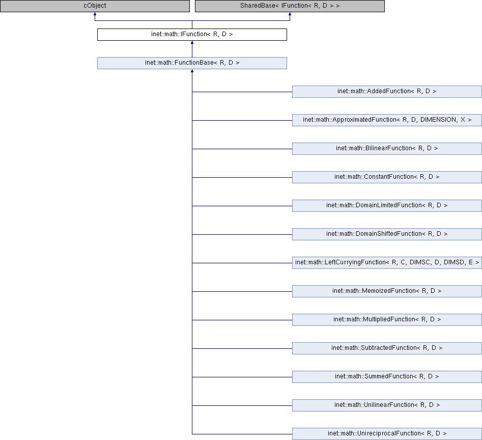 Implemented in inet::math::LeftCurryingFunction< R, C, DIMSC, D, DIMSD, E >, inet::math::SummedFunction< R, D >, inet::math::ApproximatedFunction< R, D, DIMENSION, X >, inet::math::DividedFunction< R, D >, inet::math::UnireciprocalFunction< R, D >, inet::math::MultipliedFunction< R, D >, inet::math::BilinearFunction< R, D >, inet::math::MemoizedFunction< R, D >, inet::math::SubtractedFunction< R, D >, inet::math::DomainShiftedFunction< R, D >, inet::math::UnilinearFunction< R, D >, inet::math::DomainLimitedFunction< R, D >, inet::math::AddedFunction< R, D >, and inet::math::ConstantFunction< R, D >.