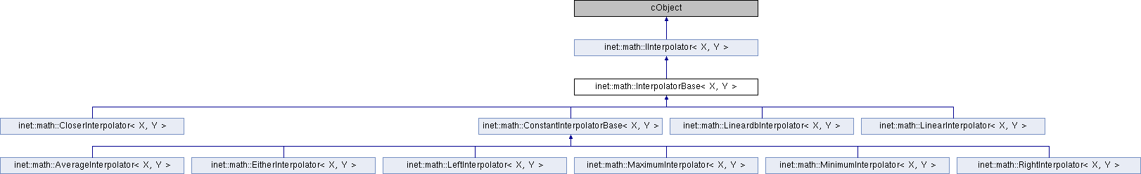 Public Member Functions inherited from inet::math::IInterpolator< X, Y > | |