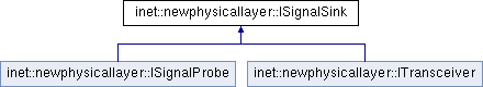 Inheritance diagram for inet::newphysicallayer::ISignalSink: