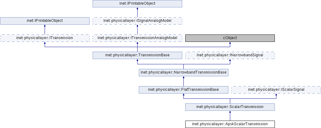 | | ApskScalarTransmission (const IRadio *transmitter, const Packet *packet, const simtime_t startTime, const simtime_t endTime, const simtime_t preambleDuration, const simtime_t headerDuration, const simtime_t dataDuration, const Coord &startPosition, const Coord &endPosition, const Quaternion &startOrientation, const Quaternion &endOrientation, const IModulation *modulation, b headerLength, b payloadLength, Hz centerFrequency, Hz bandwidth, bps bitrate, W power) |