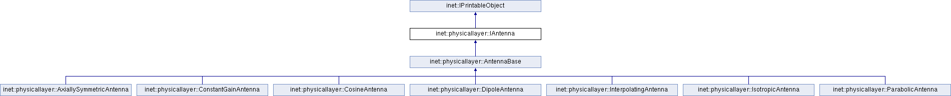 Implemented in inet::physicallayer::InterpolatingAntenna, inet::physicallayer::AxiallySymmetricAntenna, inet::physicallayer::ParabolicAntenna, inet::physicallayer::CosineAntenna, inet::physicallayer::DipoleAntenna, inet::physicallayer::ConstantGainAntenna, and inet::physicallayer::IsotropicAntenna.