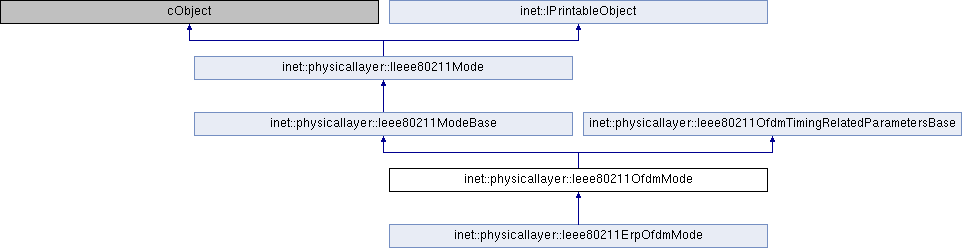 Public Member Functions inherited from inet::physicallayer::Ieee80211ModeBase | |