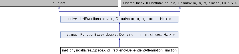 | | SpaceAndFrequencyDependentAttenuationFunction (const Ptr< const IFunction< double, Domain< Quaternion >>> &transmitterAntennaGainFunction, const Ptr< const IFunction< double, Domain< mps, m, Hz >>> &pathLossFunction, const Ptr< const IFunction< double, Domain< m, m, m, m, m, m, Hz >>> &obstacleLossFunction, const Point< m, m, m > startPosition, const Quaternion &startOrientation, const mps propagationSpeed) |