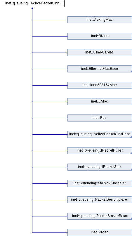 Implemented in inet::CsmaCaMac, inet::EthernetMacBase, inet::LMac, inet::Ieee802154Mac, inet::XMac, inet::BMac, inet::AckingMac, inet::queueing::PacketFilterBase, inet::Ppp, inet::PreemptableStreamer, inet::queueing::PacketClassifierBase, inet::queueing::PacketSchedulerBase, inet::PacketStreamer, inet::queueing::PacketFlowBase, inet::PacketDestreamer, inet::queueing::MarkovClassifier, inet::queueing::PacketPullerBase, inet::queueing::PacketDemultiplexer, inet::queueing::PacketServerBase, and inet::queueing::ActivePacketSink.
