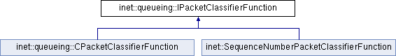 Implemented in inet::queueing::CPacketClassifierFunction, and inet::SequenceNumberPacketClassifierFunction.