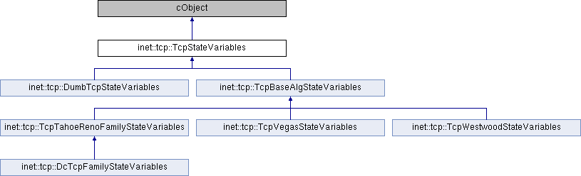 TcpStateVariables only contains variables needed to implement the "base" (RFC 793) TCP. More advanced TCP variants are encapsulated into TcpAlgorithm subclasses which can have their own state blocks, subclassed from TcpStateVariables. See TcpAlgorithm::createStateVariables().
